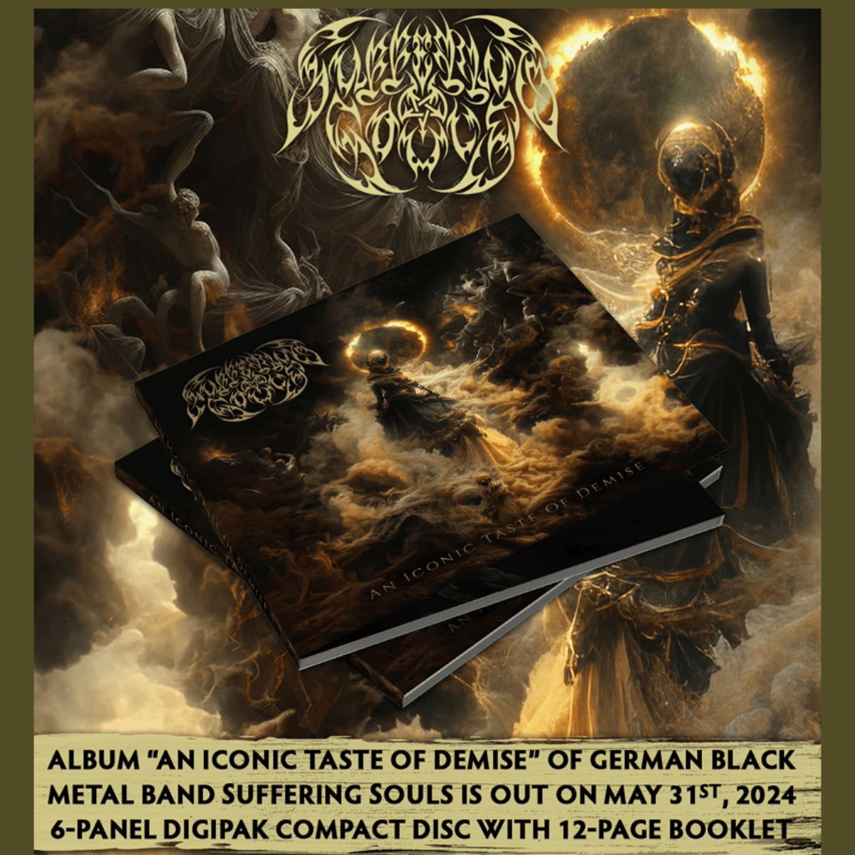 “An Iconic Taste Of Demise”, which was recorded in the legendary Hertz Studio in Poland, where Behemoth, Vader and Hate, among others, have already produced, features multi-instrumentalist Tobias “Lord Esgaroth” Micko with the refined sound of all classical instruments, lead guitars and clear, choral vocals, create a powerful and imposing, aggressive atmosphere that has never existed before in the work of Suffering Souls.