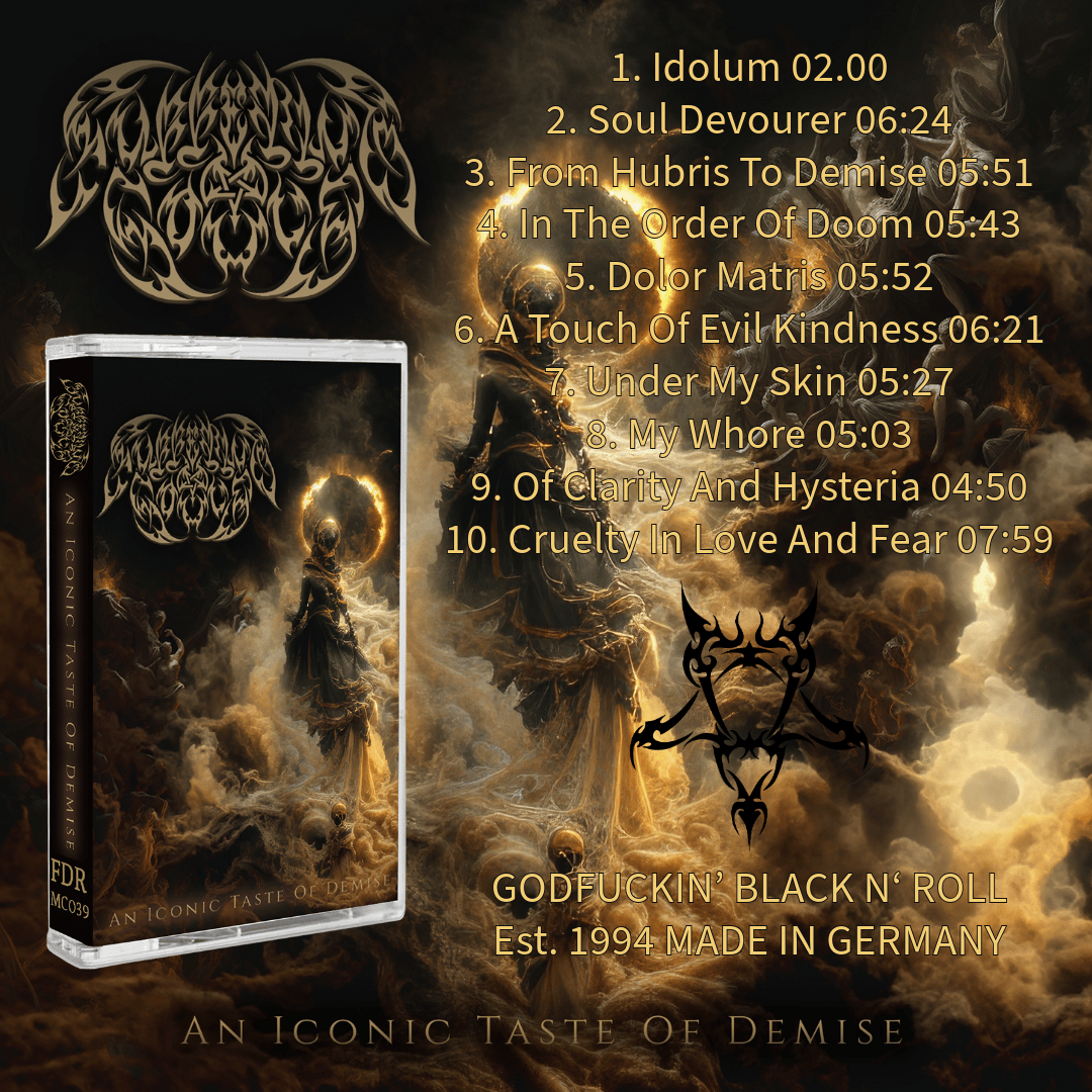 30 years have now passed since they were founded in 1994, over 5 years of creative break after the last 4th album “In Synergy Obscene”, which was highly praised by the press, and the symphonic black metal destruction machine SUFFEEING SOULS from Germany continues to strive for new heights to please the audience the 5th album entitled “An Iconic Taste Of Demise” written entirely by mastermind Tobias “Lord Esgaroth” Micko, to take you into their otherworldly and unholy visions. On the new album, the satanic forefather delivers epic anthems that are also his most aggressive and expansive songs in the band's history to date.